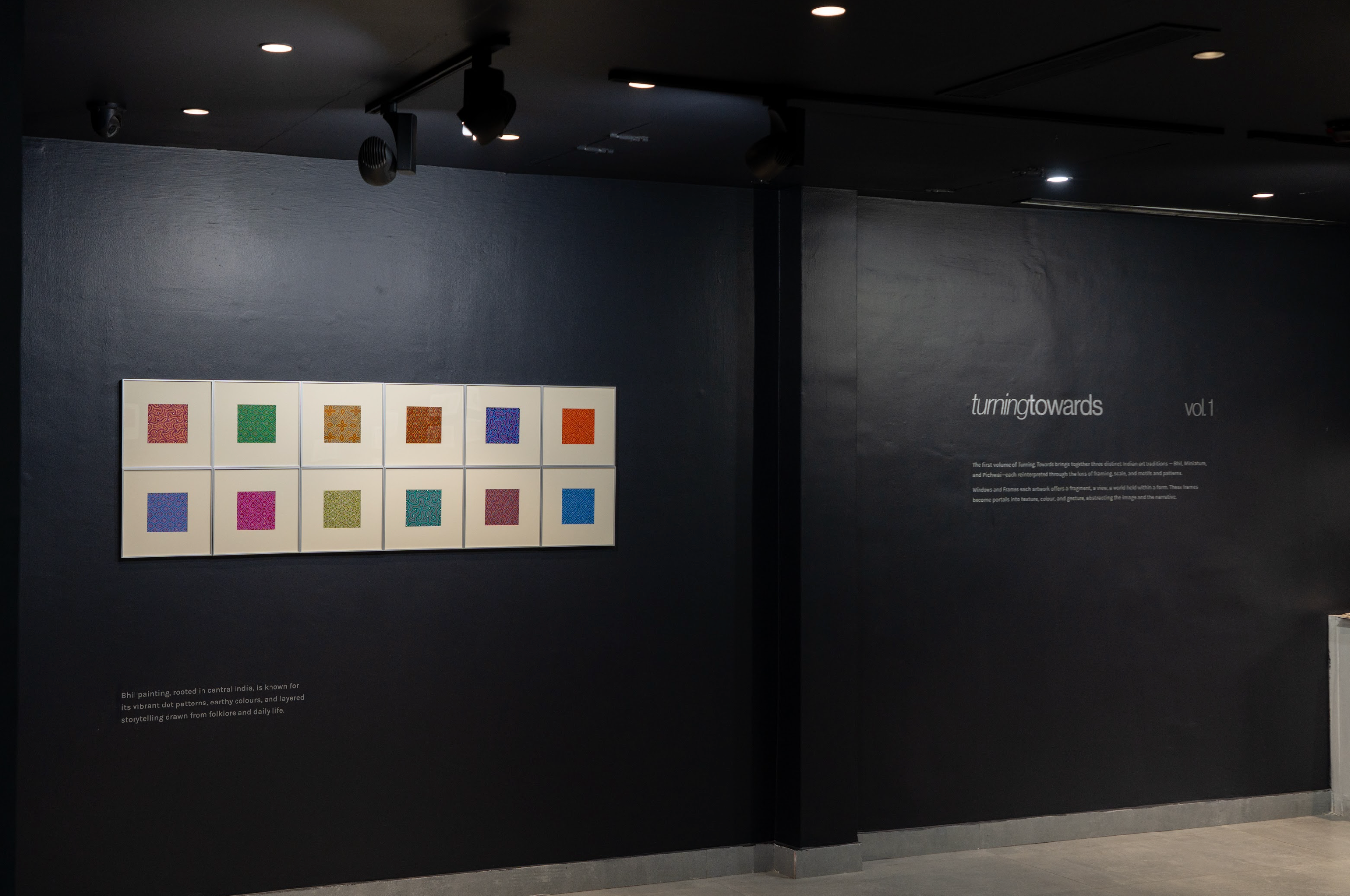 Windows & Frames, the first volume of Turning, Towards, brings together three distinct Indian art traditions — Bhil, Miniature, and Pichwai each reinterpreted through the lens of framing, scale, and abstraction.